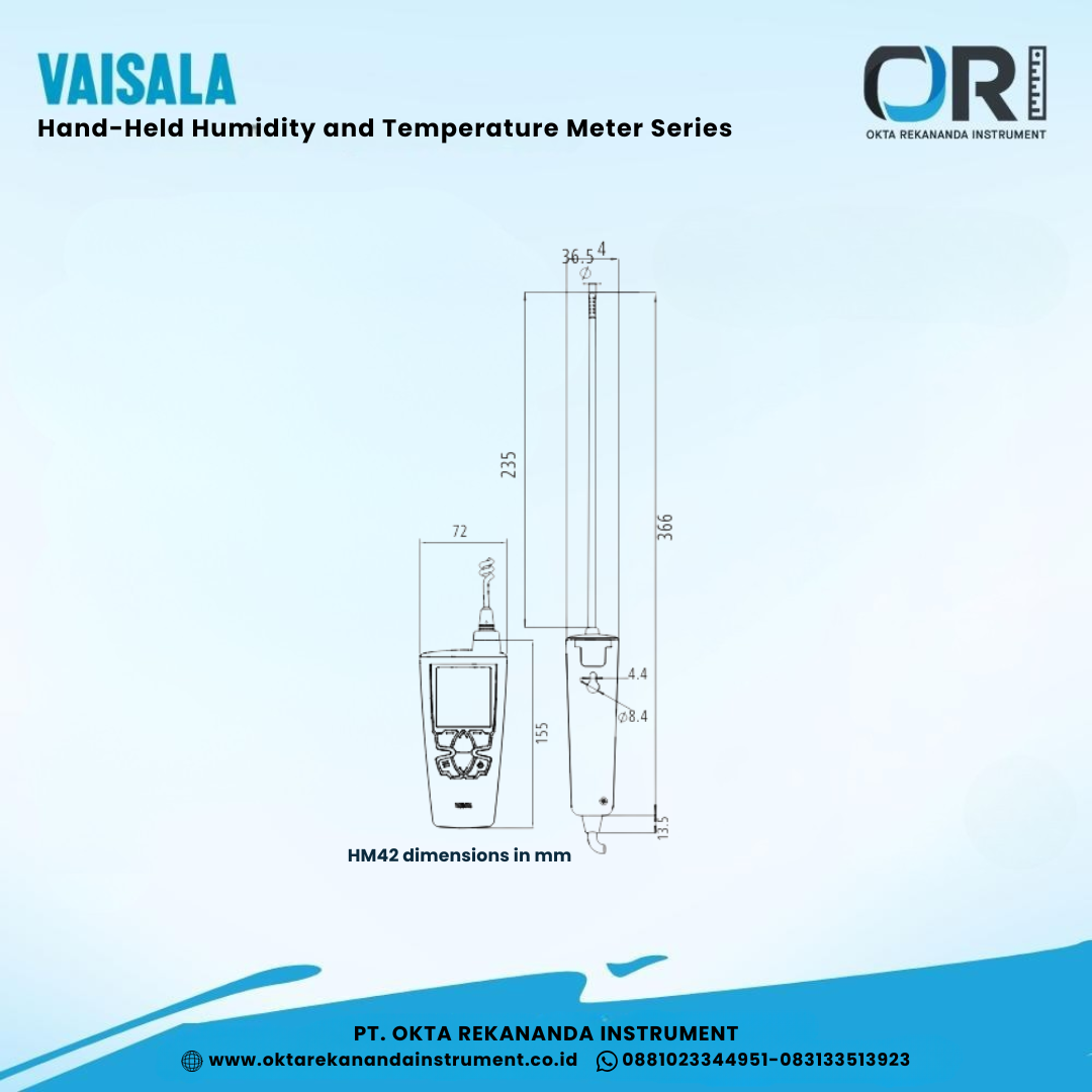 The HM42 has a thin 4 mm stainless steel measurement probe and is an ideal tool for humidity measurements in tight spaces e.g. seams between tiles or beneath flooring. The proven Vaisala HUMICAP® sensor provides reliable measurement while the user interface with graphical trend display makes daily operation quick and easy. User interface is available in 10 languages.