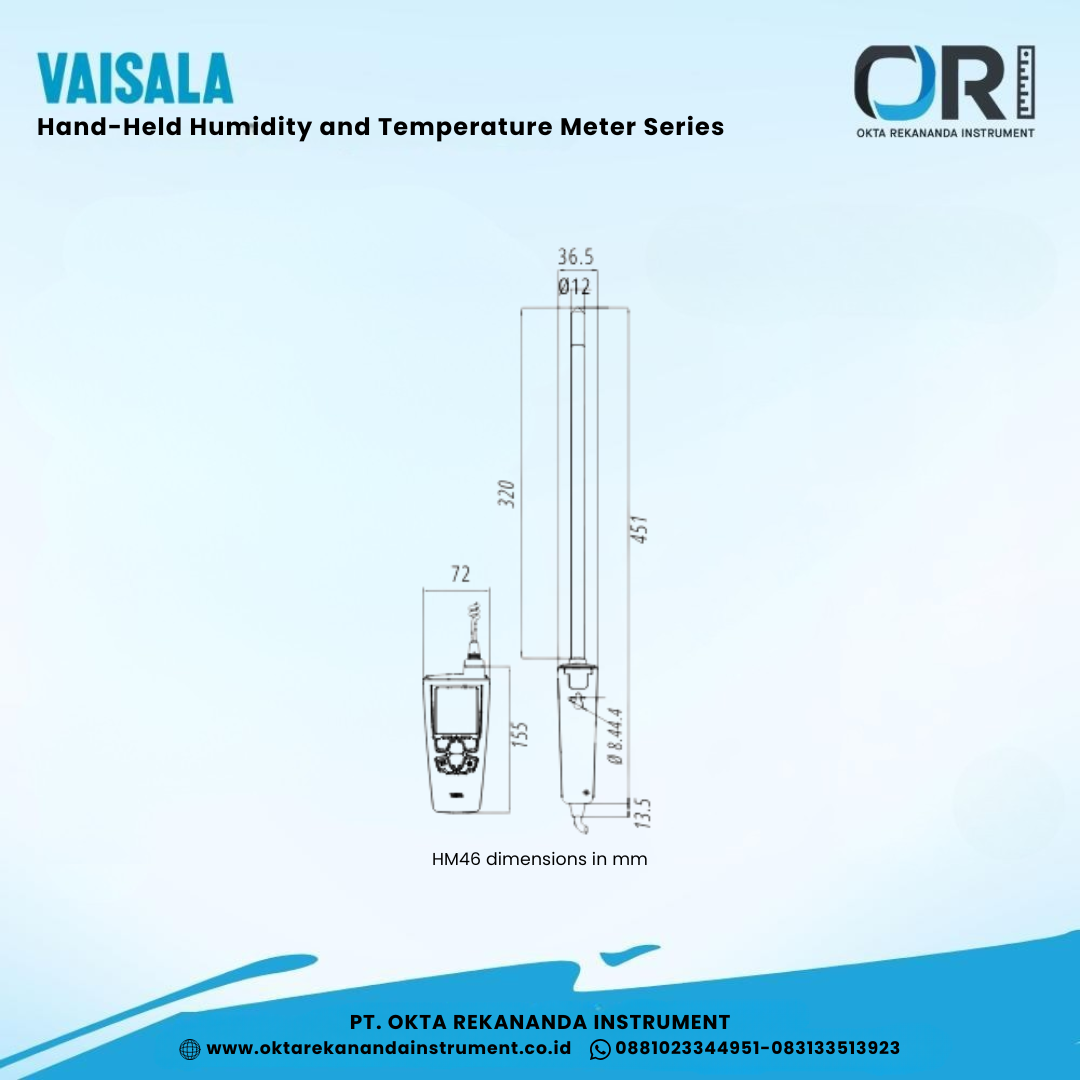 The HM46 has a long stainless steel probe and is an ideal tool for measurement requiring a robust probe structure or in elevated temperatures. The proven Vaisala HUMICAP® 180R sensor provides reliable measurement while the user interface with graphical trend display makes daily operation quick and easy. User interface is available in 10 languages.