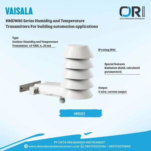 Vaisala HMS80 Series Outdoor INTERCAP® Humidity and Temperature Transmitter is optimized for easy installation in HVAC and building automation applications.